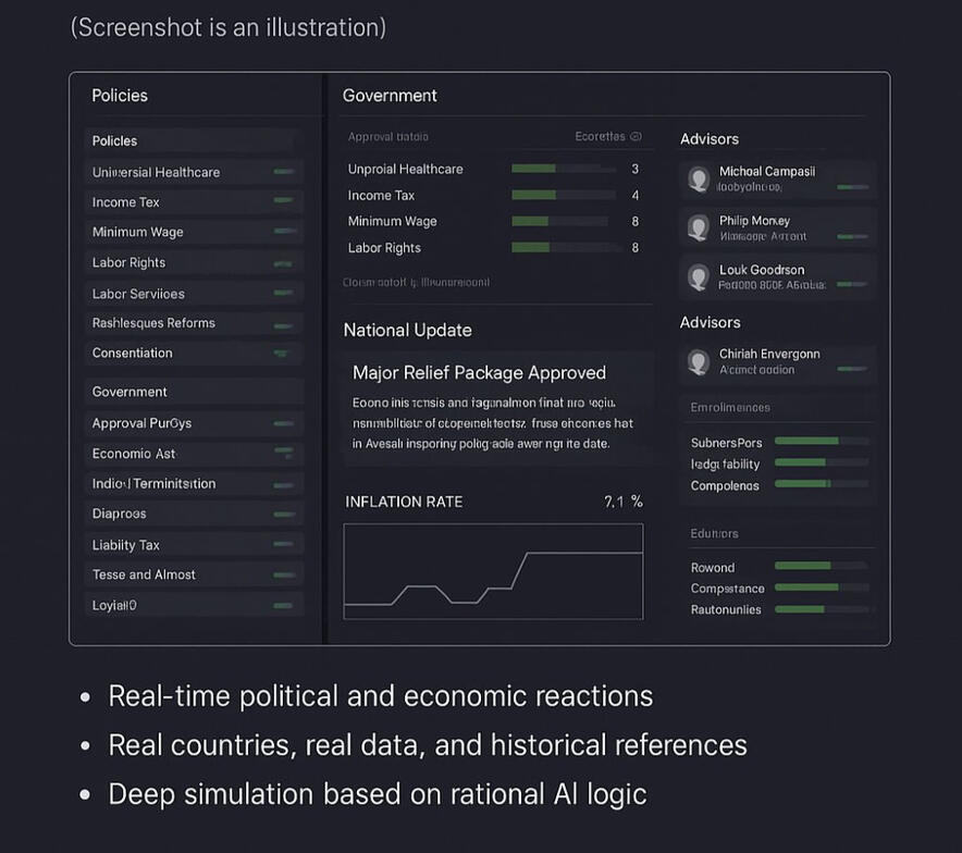 State Simulator is a strategic political simulation game where players step into the role of a national leader — with real constraints, conflicting agendas, and evolving public expectations.You’re not just passing policies.